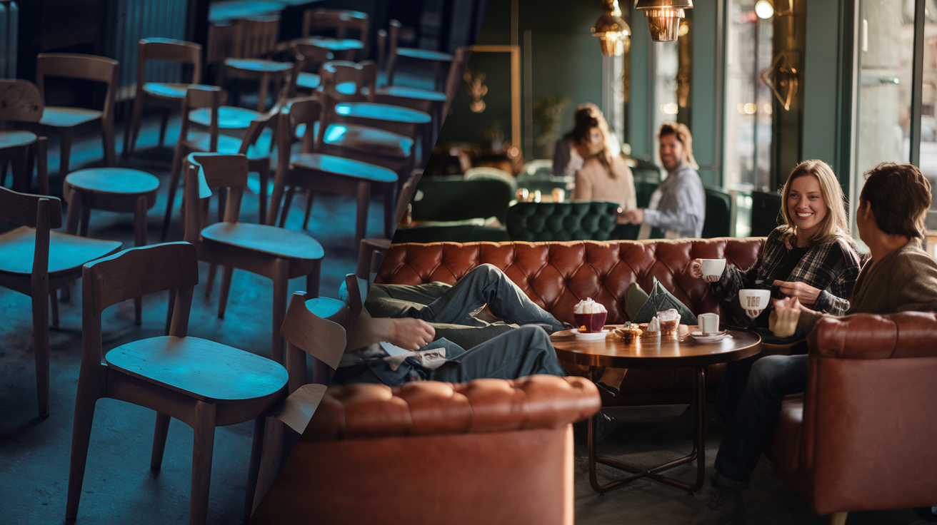 Я видел кафе, где еда на пятёрку, а зал пустой. И наоборот: средний кофе, но диваны такие, что люди сидят часами и заказывают ещё десерт. Интерьер для кафе — это не фон, это тихий продавец, который работает без выходных. В конце поделюсь лайфхаком от моего коллеги-ресторатора, который увеличил средний чек на 18 процентов всего лишь заменив посадку.