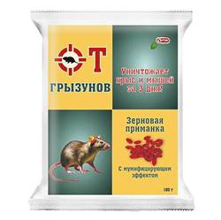 ОТ ГРЫЗУНОВ, ЗЕРНОВАЯ ПРИМАНКА/ 100г, зерновая приманка с мумифицирующим эффектом для истребления крыс и мышей.
