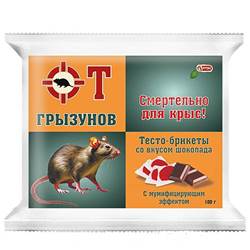 ОТ ГРЫЗУНОВ, ТЕСТО-БРИКЕТ/ 100г, приманка в виде тесто-брикетов со вкусом шоколада для истребления крыс и мышей.