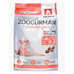 Сухой корм д/кошек Zoogurman Hypoallergenic, Лосось с рисом 350 гр.