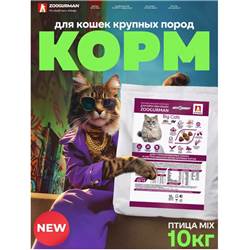 Сухой корм д/кошек крупных пород Zoogurman Big Cats, Птица/Mix 10 кг