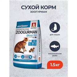 Полнорац. сухой корм д/кошек Zoogurman, Океаническая рыба 1,5 кг