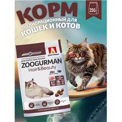 Сухой корм д/кошек Zoogurman Hair & Beauty, Птица 350 гр.