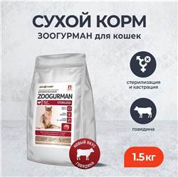Сухой корм д/стерилизованных кошек и котов Zoogurman Sterilized, Говядина 1,5 кг